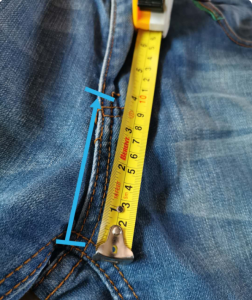 When measuring the hip circumference, follow the figure below, and use the 3.4-4 inches upwards of the cross wave as the positioning point (3.4 inches for women and 4 inches for men). The sum of the two sides of the “V” shape at the soft ruler in the figure is the hip circumference , The two sides of the “V” shape of the ruler are as parallel as possible to the natural V shape formed by the front half of the waist when the jeans are naturally laid flat.