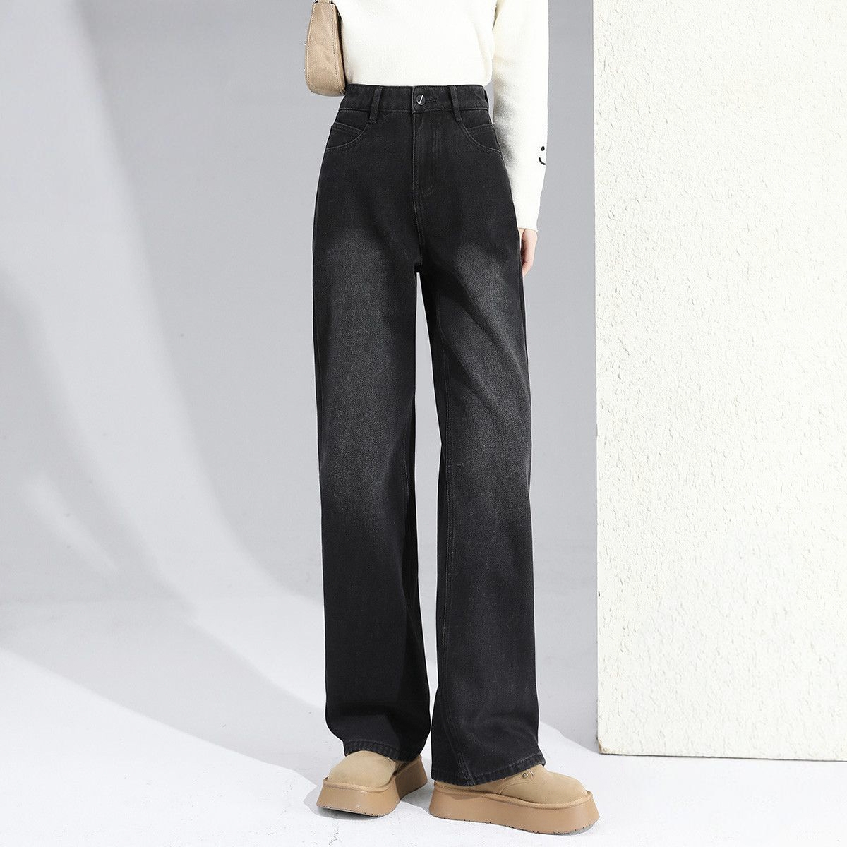 Item Details Product Type Women Jeans Style Winter casual, minimalist Season Autumn / Winter Color Solid black Lining Soft fleece lining Fabric Cotton denim or cotton-blend denim Fabric Weight Heavyweight Fit Type Loose Waist Design High waist Closure Zipper fly with button Surface Finish Washed, clean look Length Full length Sizes XS–2XL Wearing Feel…