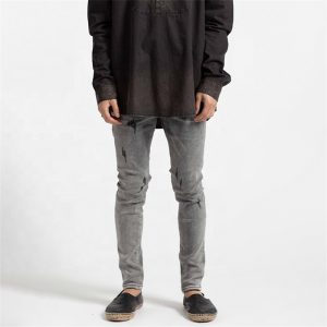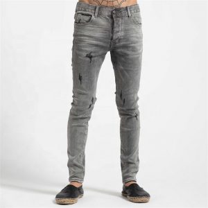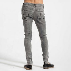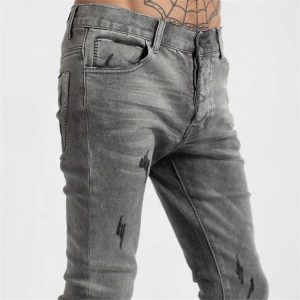 Embroidery Skinny Fit Grey Men Jeans