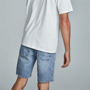 Denim shorts are partial-length trousers, also known as shorts, that also feature a denim construction. They are usually made of the same denim material as jeans. The difference is that jeans extend all the way to the ankles when worn, whereas denim shorts typically extend to the thighs or knees or when.
