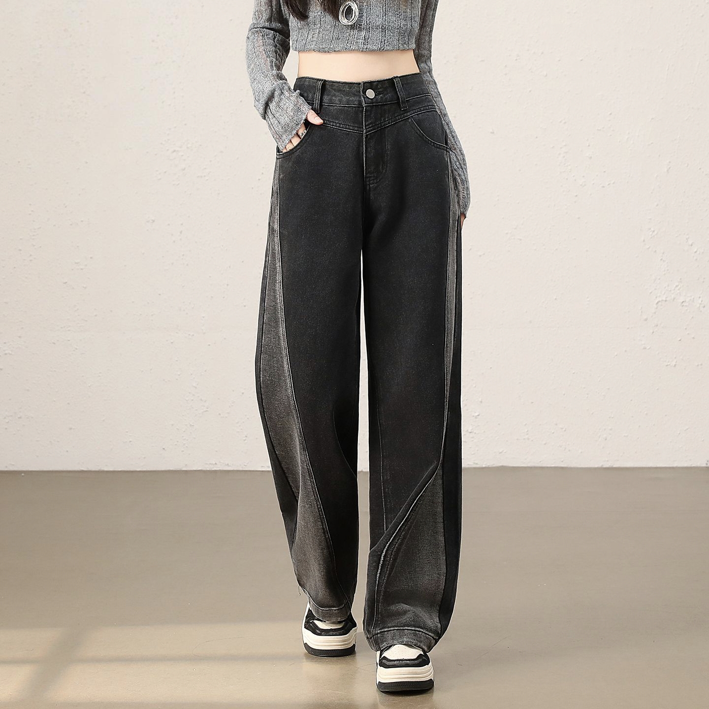Autumn solid color Korean high waist wide leg women jeans