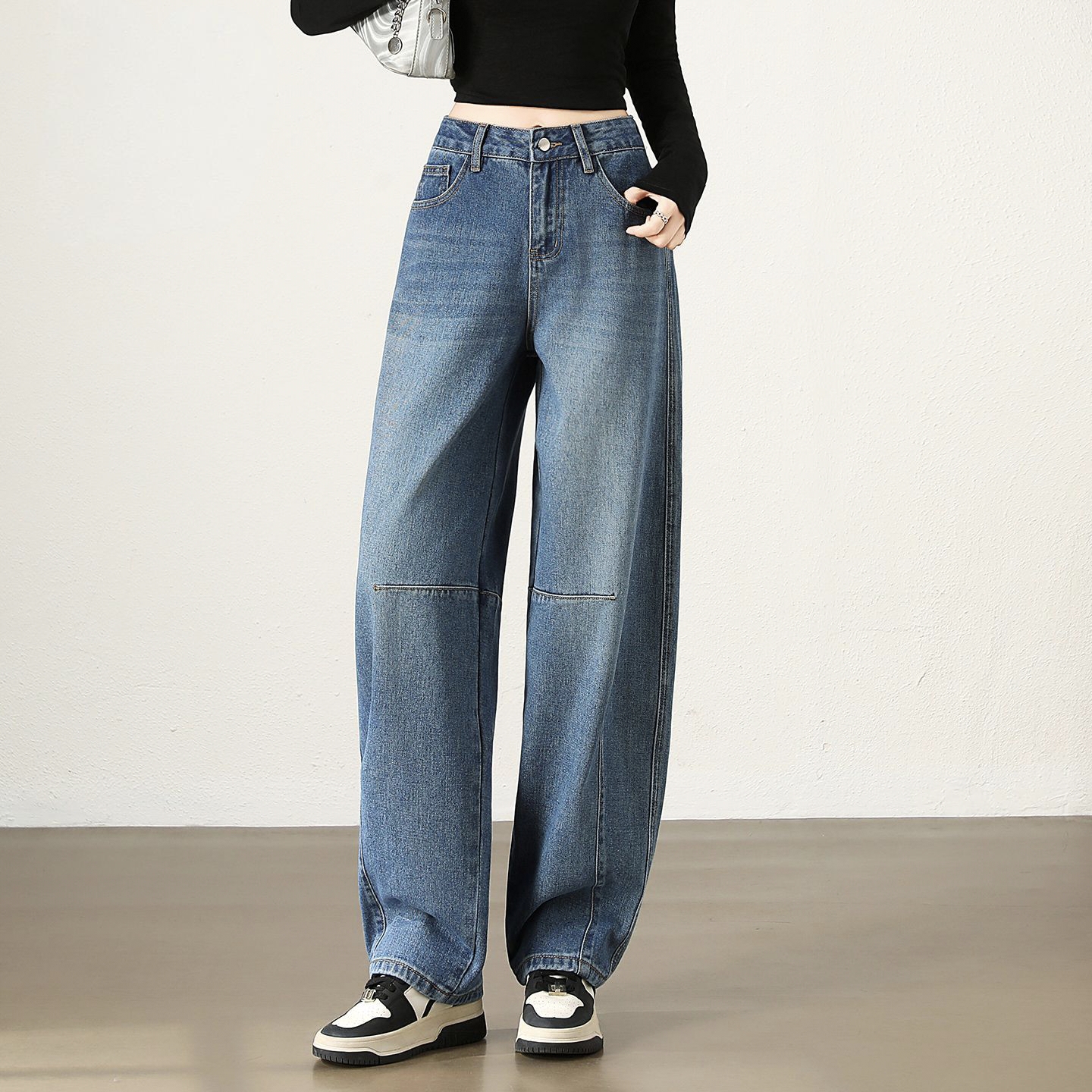 Item Details Product Type Women Jeans Style Korean casual, minimalist Season Autumn Color Solid color Fabric Cotton denim or cotton-blend denim Fabric Weight Medium weight Fit Type Loose wide leg Waist Design High waist Closure Zipper fly with button Wash Finish Washed, clean surface Length Full length Sizes XS–2XL Wearing Feel Relaxed, balanced, easy…