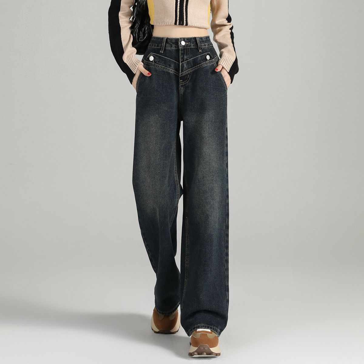 Autumn high waist wide leg straight women jeans