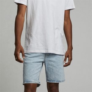 Denim shorts are partial-length trousers, also known as shorts, that also feature a denim construction. They are usually made of the same denim material as jeans. The difference is that jeans extend all the way to the ankles when worn, whereas denim shorts typically extend to the thighs or knees or when.